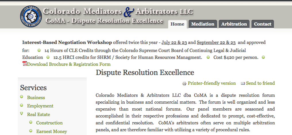 Periodically we provide Drupal consultation and general website advice for a mediation and arbitration group.