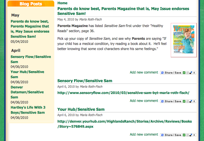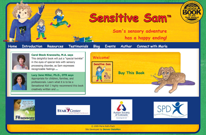 A site for the children's book Sensitive Sam. We built the Drupal theme, incorporating the book graphics.